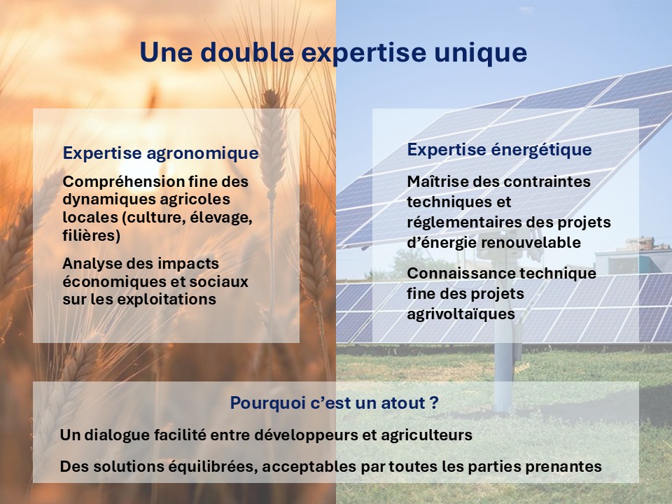 Spécialisé dans les énergies renouvelables, ALITIS a développé une expertise pointue dans deux domaines clés : le photovoltaïque et les enjeux agricoles des projets d’énergie renouvelable.